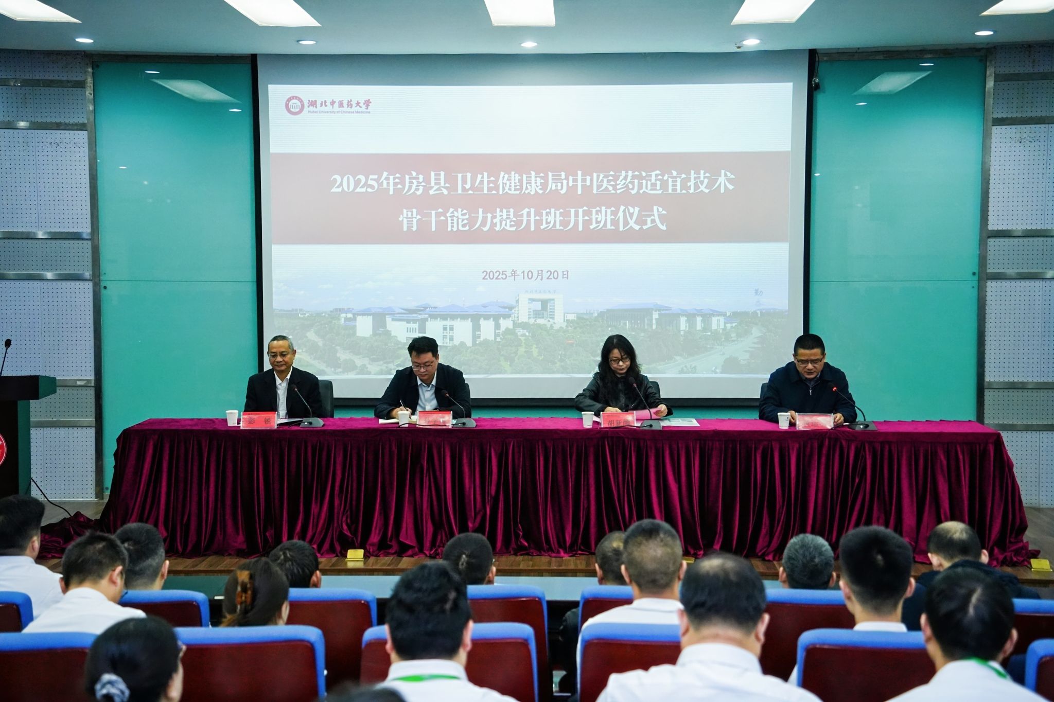 10月20日,由565net必赢客户端与房县卫生健康局联合举办的“中医药适宜技术骨干能力提升班”开班仪式,在我校黄家湖校区国际交流中心学术报告厅隆重举行。房县卫生健康局公共卫生总师孙学国,我校必赢565net官网、针灸骨伤学院负责人等出席开班仪式。